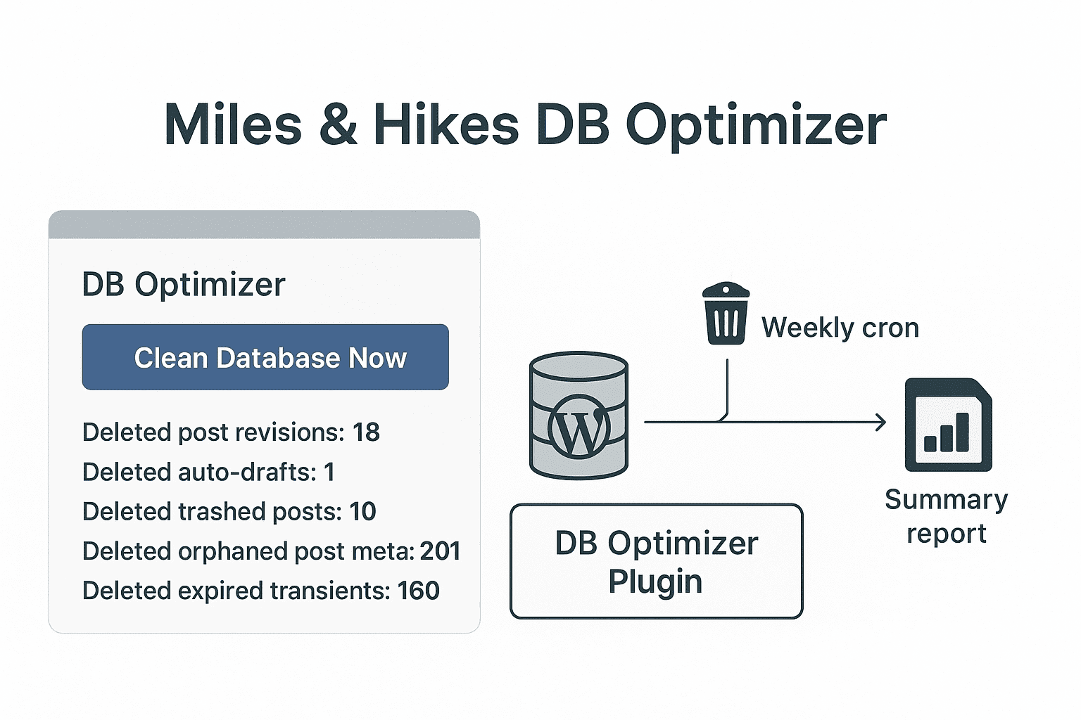 Developed a lightweight, custom WordPress plugin to automate routine database maintenance tasks, replacing a heavier third-party solution. The goal was to safely clean obsolete data, improve site performance, and provide easy manual and automated management without affecting existing content or backups.