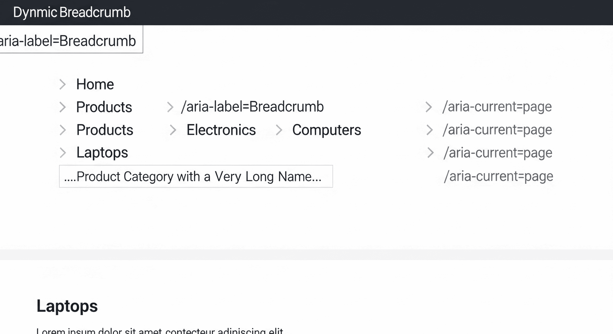 Reusable breadcrumb function auto-injected above content, handling multiple content types, truncating long titles, and applying accessible markup